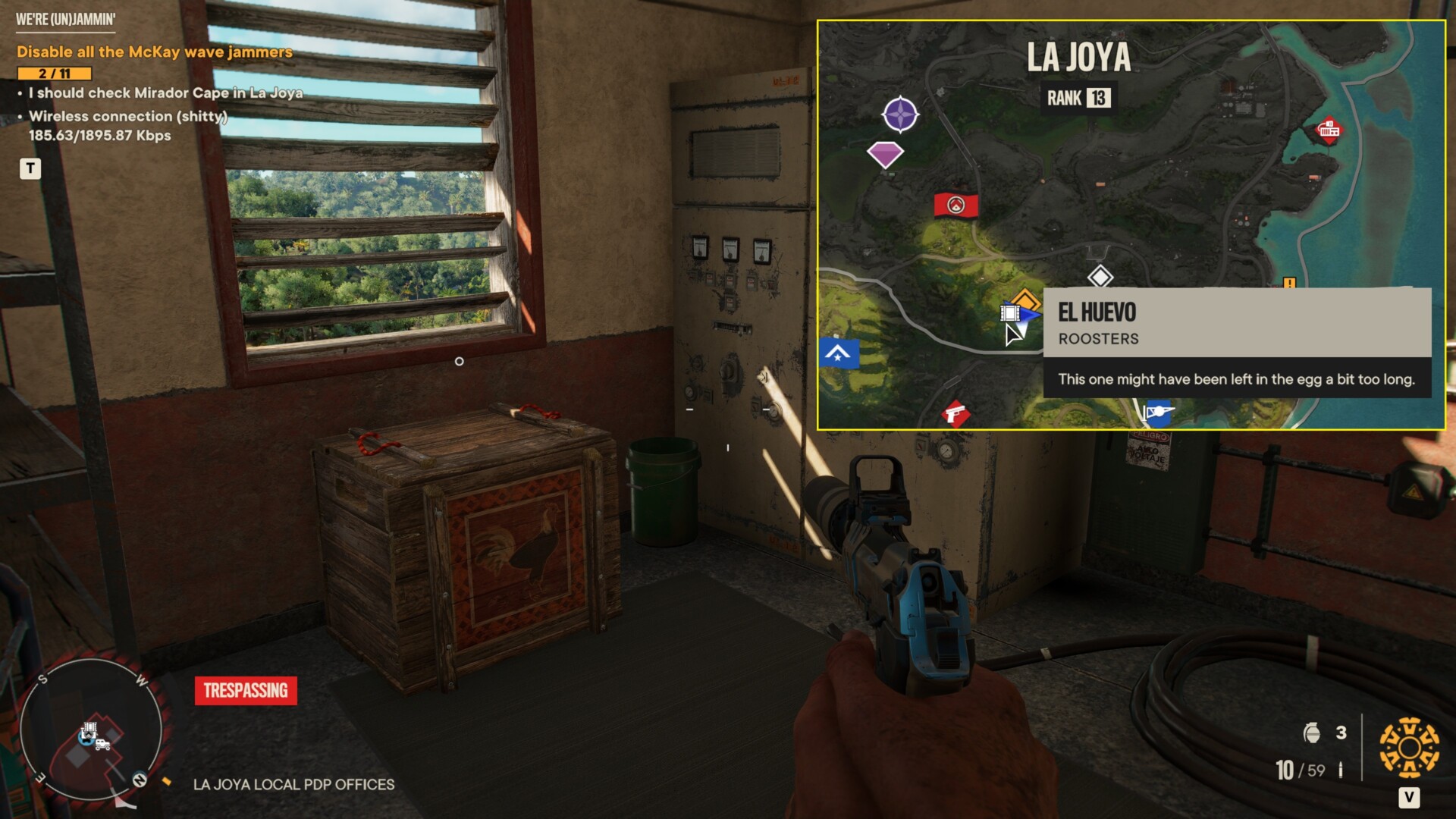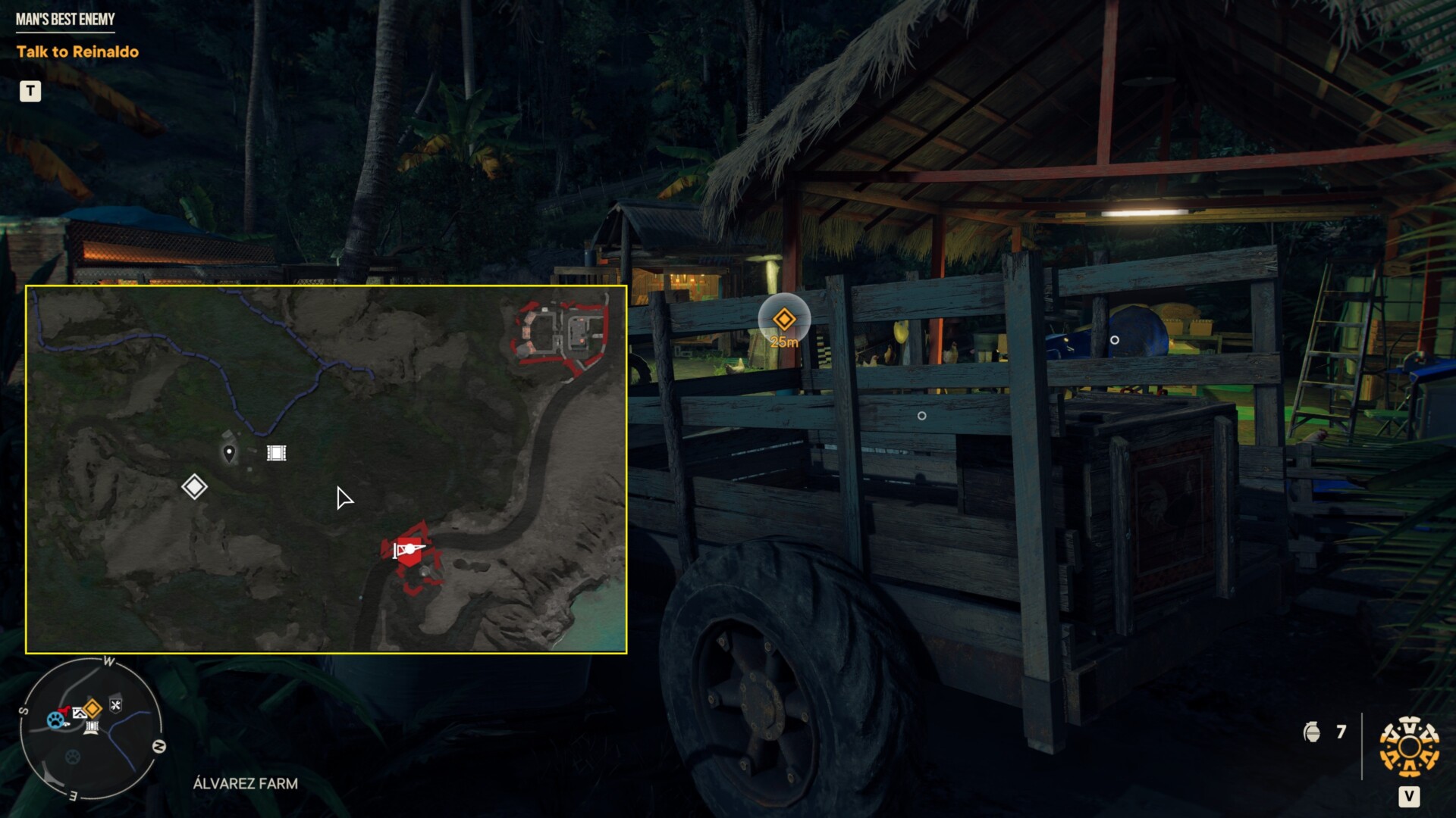 There’s a place here called Alvarez Farm where you’ll find the crate. If you already made it to the guerrilla base in El Este, you should find a note that starts a Yaran Story called “Man’s Best Enemy.” That quest marker will also lead you to Alvarez Farm where you can do the quest chain to obtain the rooster amigo Chicharron.
