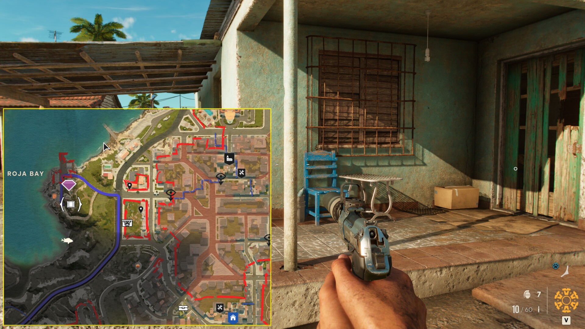 The closest fast travel point in Esperanza is the Mercurio Mecanico guerrilla hideout. From there, head northwest until you reach the coast. You’ll find the Casas del Lodo Residences, and the crate is inside one of the buildings. There’s also a nearby Treasure Hunt called “The Last One to Leave.”