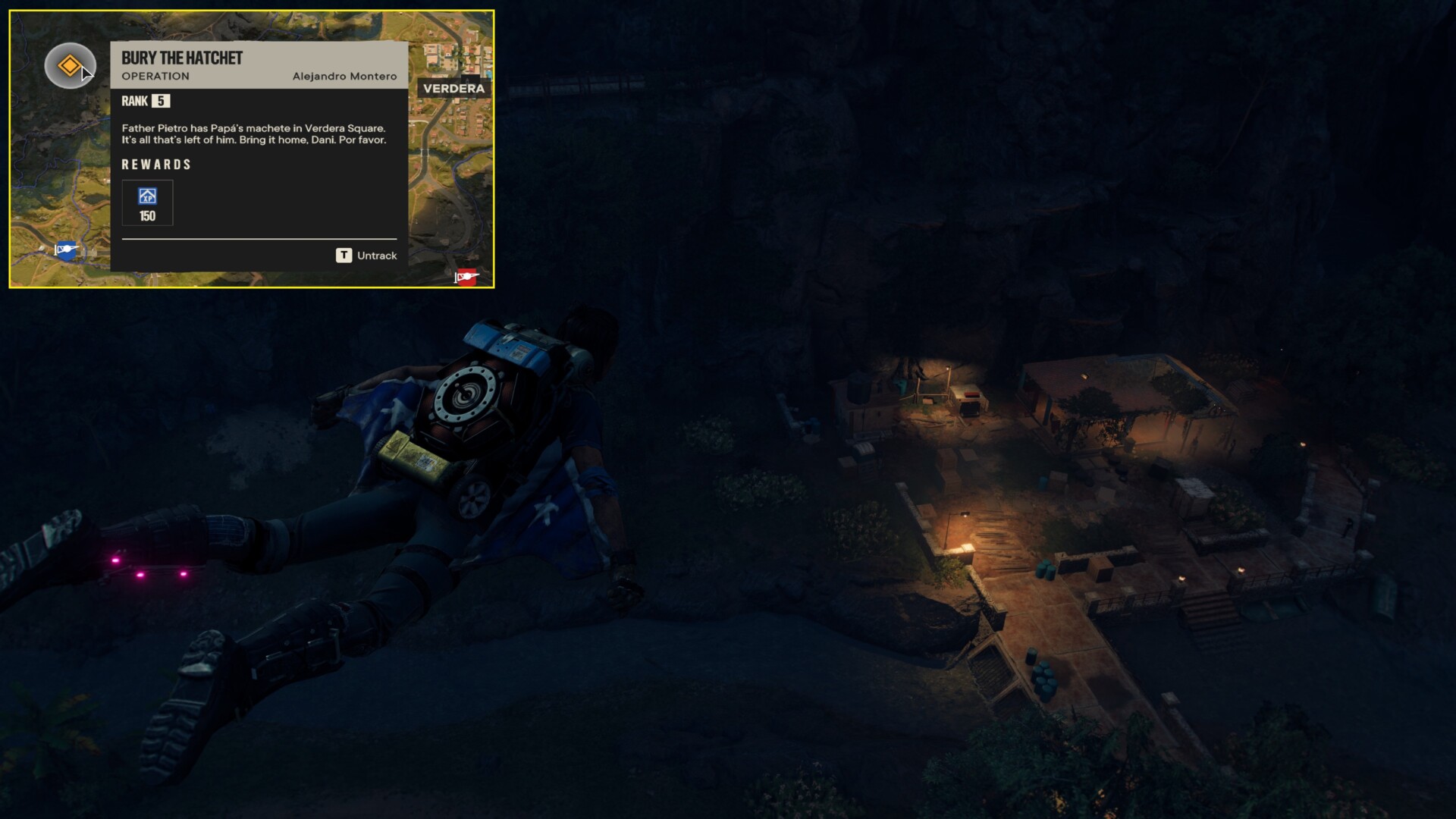 That mission is called “Bury the Hatchet.” You’ll receive it as you continue progressing Madrugada’s story arc. After the death of Carlos Montero, his son Alejandro wants you to find a machete as a keepsake. You’ll return to Verdera to talk to an NPC. Then, the marker will pop up right where La Raja Bar is.