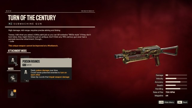 Here are the mods of the Turn of the Century unique SMG in Far Cry 6: