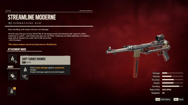 Here are the mods of the Streamline Modern unique SMG in Far Cry 6:
