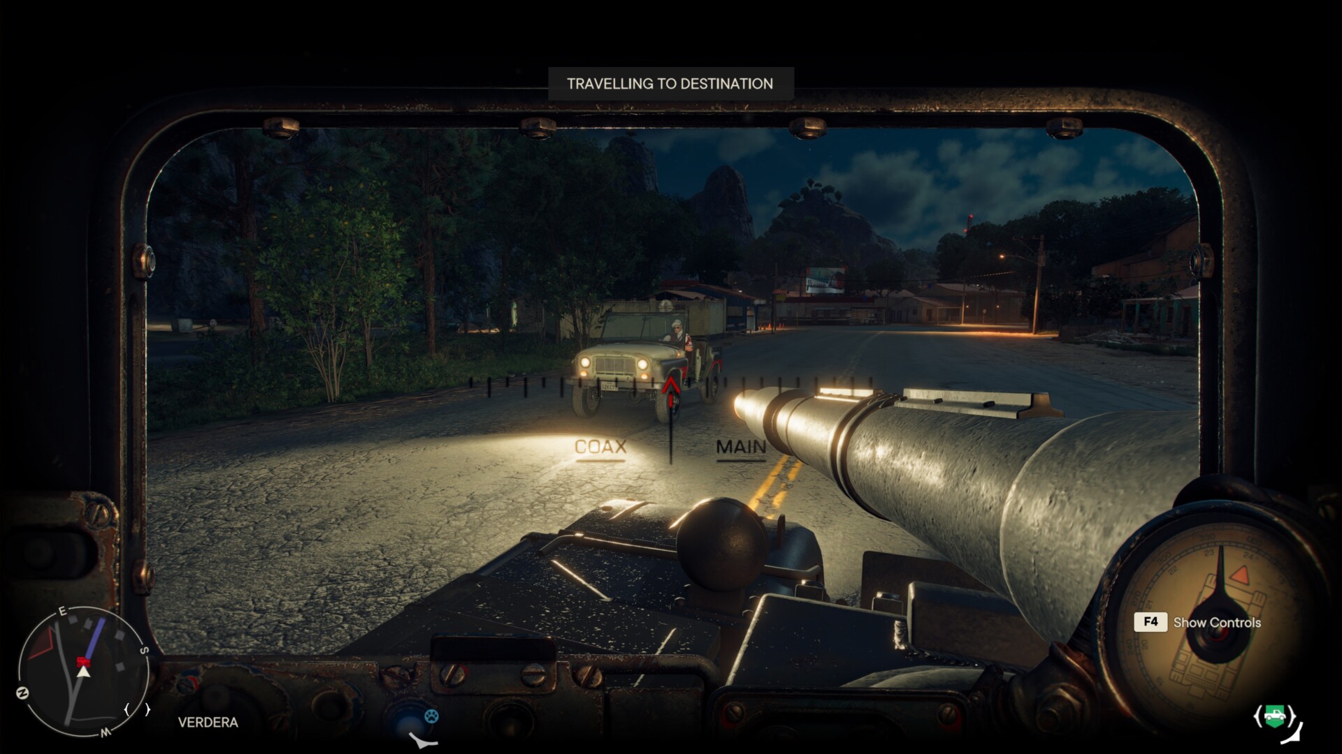 Note: Tanks are huge and cumbersome. You’re better off pressing the shift key so they follow the main road. Trying to steer them on dirt roads and narrow mountain paths is a tough challenge.
