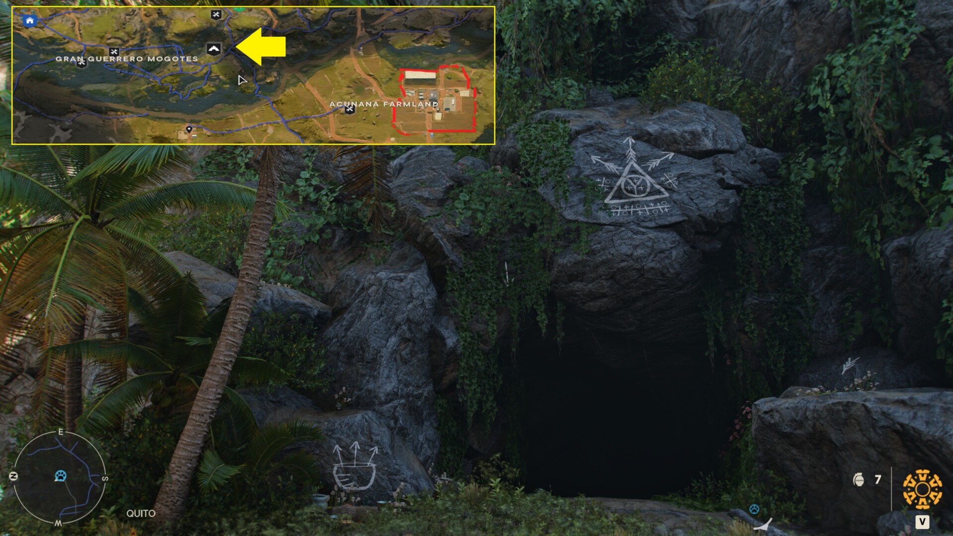 Starting the Triada Blessings sidequest in Far Cry 6: Visiting Oluwa Cave in Isla Santuario
