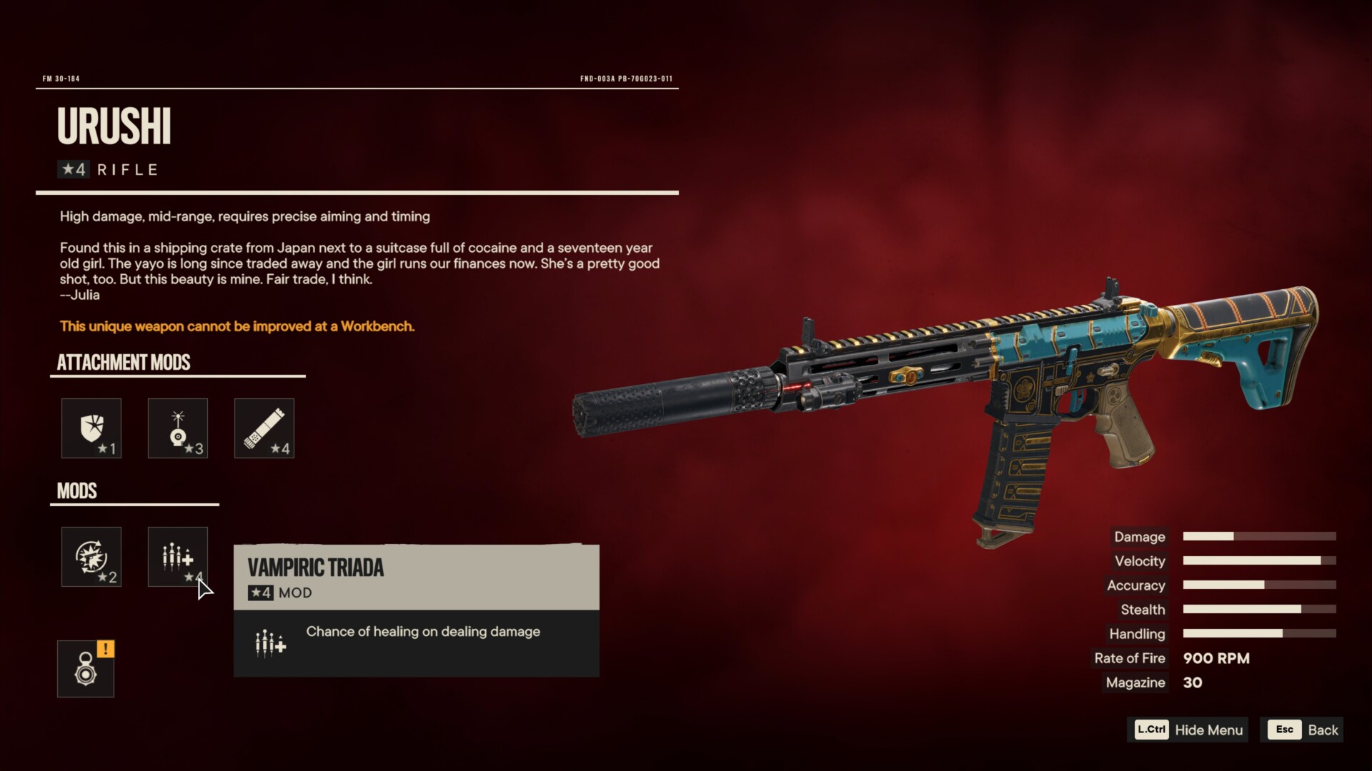 Anyway, just open the Yaran Contraband chest to receive the Urushi unique rifle. Here are its mods: