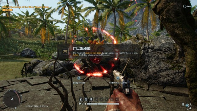 The Still Standing Power can be obtained whenever you complete Citra’s Trials. These act as extra lives, replenishing your health bar if it’s fully depleted. Similar to other temporary Powers in the DLC, you can sell these by mousing over them and pressing the “Z” key.