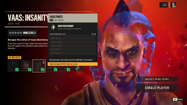 You might want to hold on to your currency until you have 8,000 cash in Far Cry 6 Vaas: Insanity. This is a requirement for the Vaas Pants armor. Like the other gear pieces, this is wearable by Dani in the main campaign. It’s got the Marathon Runner perk that improves maximum stamina.