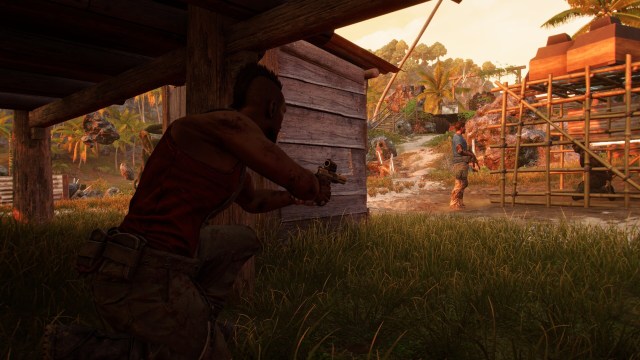 The normal method is self-explanatory: just stay hidden and make your way around the camp as you free the Vaas clones. Use takedowns on the regular soldiers, and a silenced .308 carbine sniper rifle on Jason Brody (if you have it). Brody will unlikely get taken out in a single shot if you’re using weaker weapons like the AK-47 or 1911 pistol. He’ll end up alerting enemies, so you’ll have no choice but to blast everyone while rescuing the prisoners.
