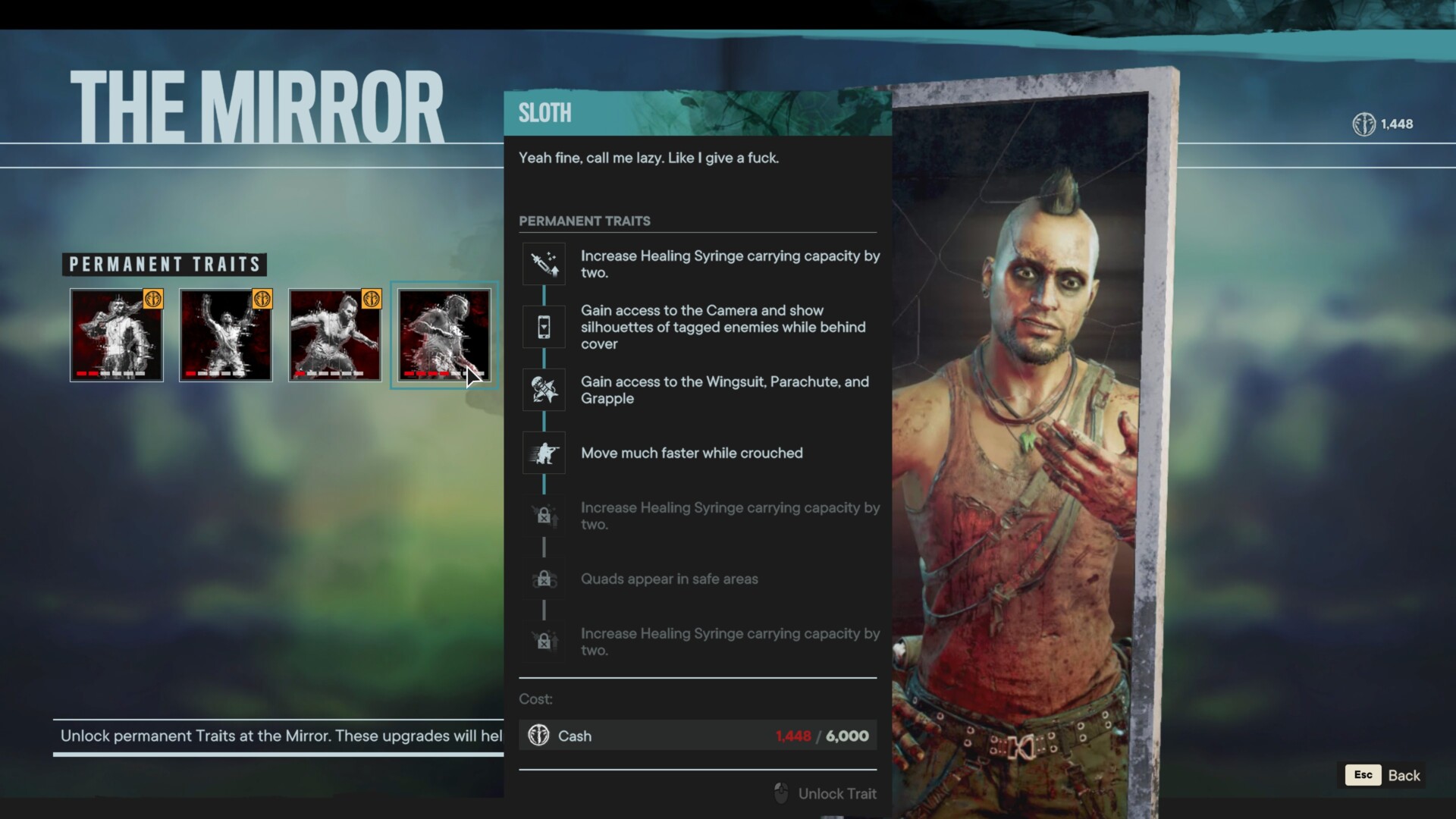 Getting the Wingsuit, Quad Buggy, and other tools in the Far Cry 6 Vaas: Insanity DLC is quite simple enough. All you need to do is unlock them as Mirror skills in the Sloth category. Because the perks need to be obtained in sequence, you’ll need to amass a lot of cash as well.