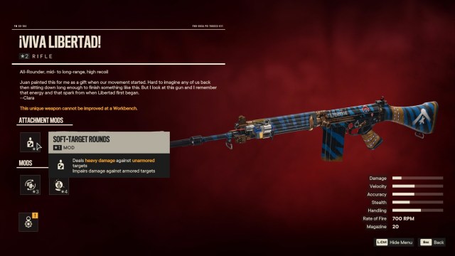 Here are the mods of the Viva La Libertad unique rifle in Far Cry 6: