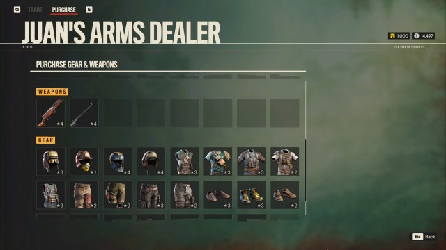 - Juan’s Arms Dealers – Apart from selling Resolver weapons and Supremo backpacks, arms dealers will also sell a few weapons and armors that you haven’t found yet. The items available in the pool are dependent on your character’s rank. The arms dealers are found in military bases that you’ve captured.