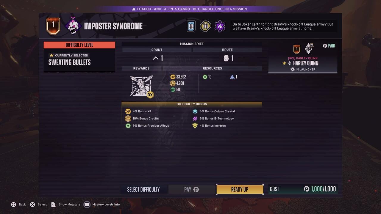 My first suggestion for getting a high Fear Rank fast in Suicide Squad: Kill the Justice League is to play on the highest difficulty you have unlocked. The more XP you acquire, the higher the difficulties you’ll unlock. If the game is ever too hard, you can scale it down, but you gain a higher XP and resource modifier the higher the difficulty is.