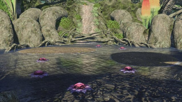 - Center path, no pollen: Two large water spears will simultaneously cast off a series of large cross AoEs. To avoid every round, you either have to run past the middle or step into the water to avoid the final cast.