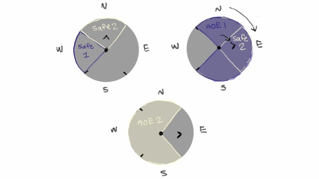 - Lightning: The cardinal directions are hit with lightning, so get to the intercardinal directions for the safe space.