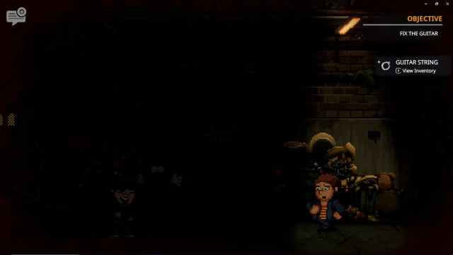 Head out of the backstage area and interact with the amp and guitar chord on the floor of the main stage. You’ll need to hit a few QTEs to get the sound just right, but as soon as you do you need to quickly find a place to hide. Simply head backstage again and this time head further back into the basement.