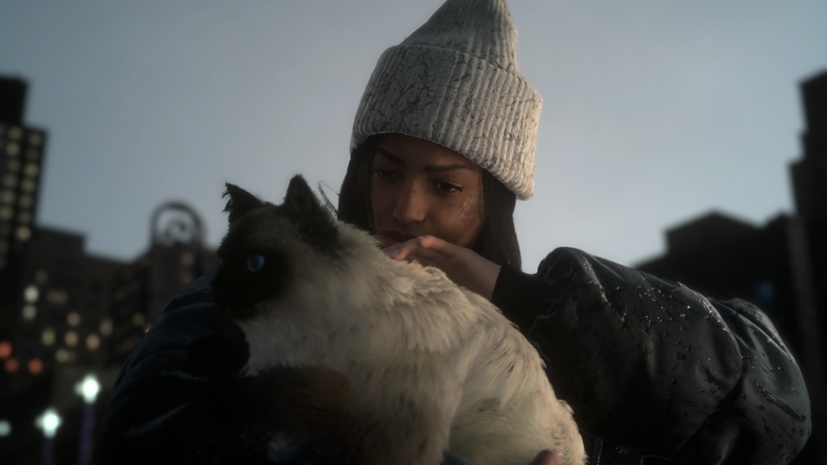 Assuming you decide to return to New York, you’ll watch a very short cutscene where Frey is walking while carrying Homer. This is the game’s happy ending (because she’s with her cat, damn it!).