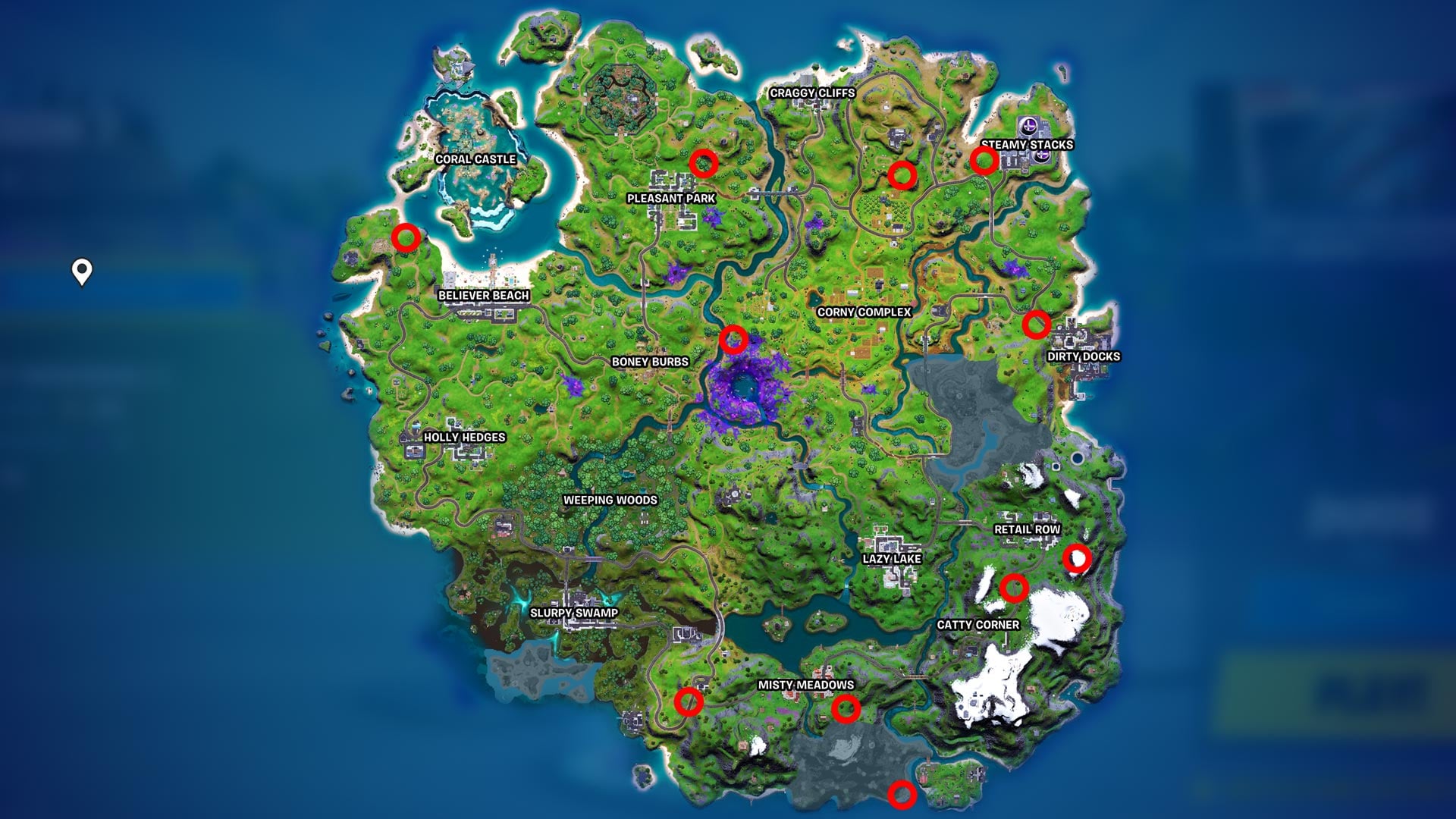 We’re still gathering info and will update this map as we find more spawn locations for Cosmic Chests in Fortnite. Spawn rates are also currently unknown.