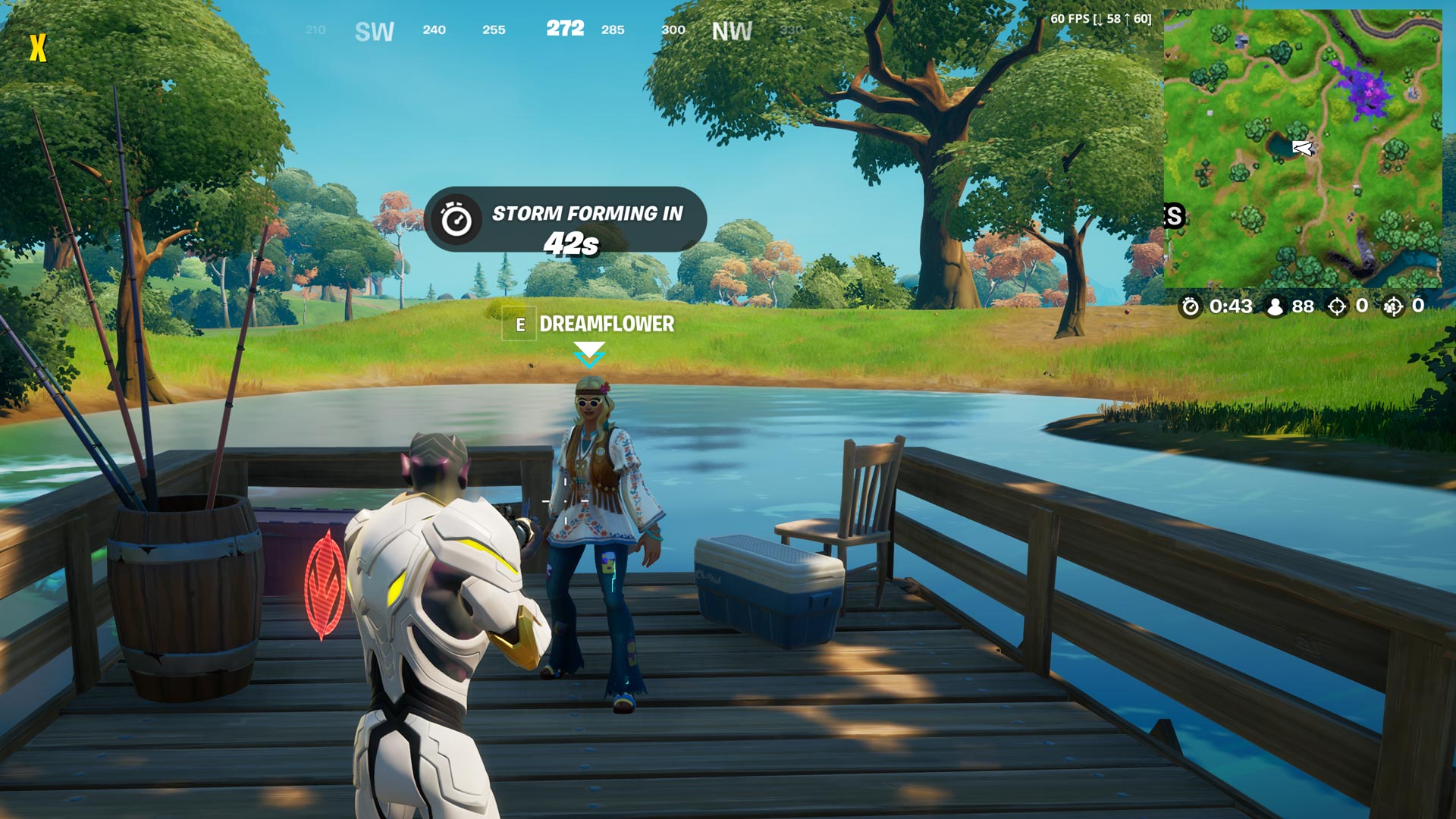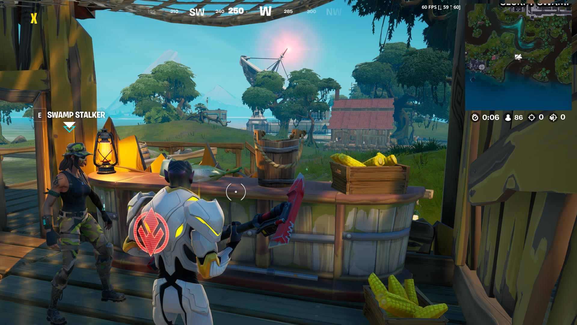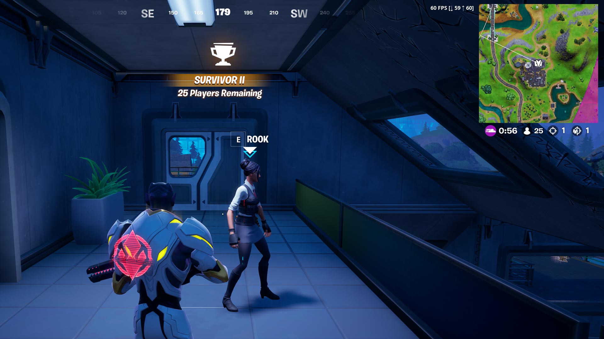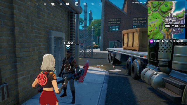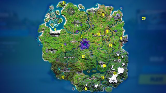 14. Rook – This agent resides at the Dockside Dish IO base. It’s by the highland lake between Retail Row and Corny Complex, or southwest of Dirty Docks. Rook offers two Quests and sells the blue Bolt Sniper, slurp fish, and the Mass Supply Drop order.