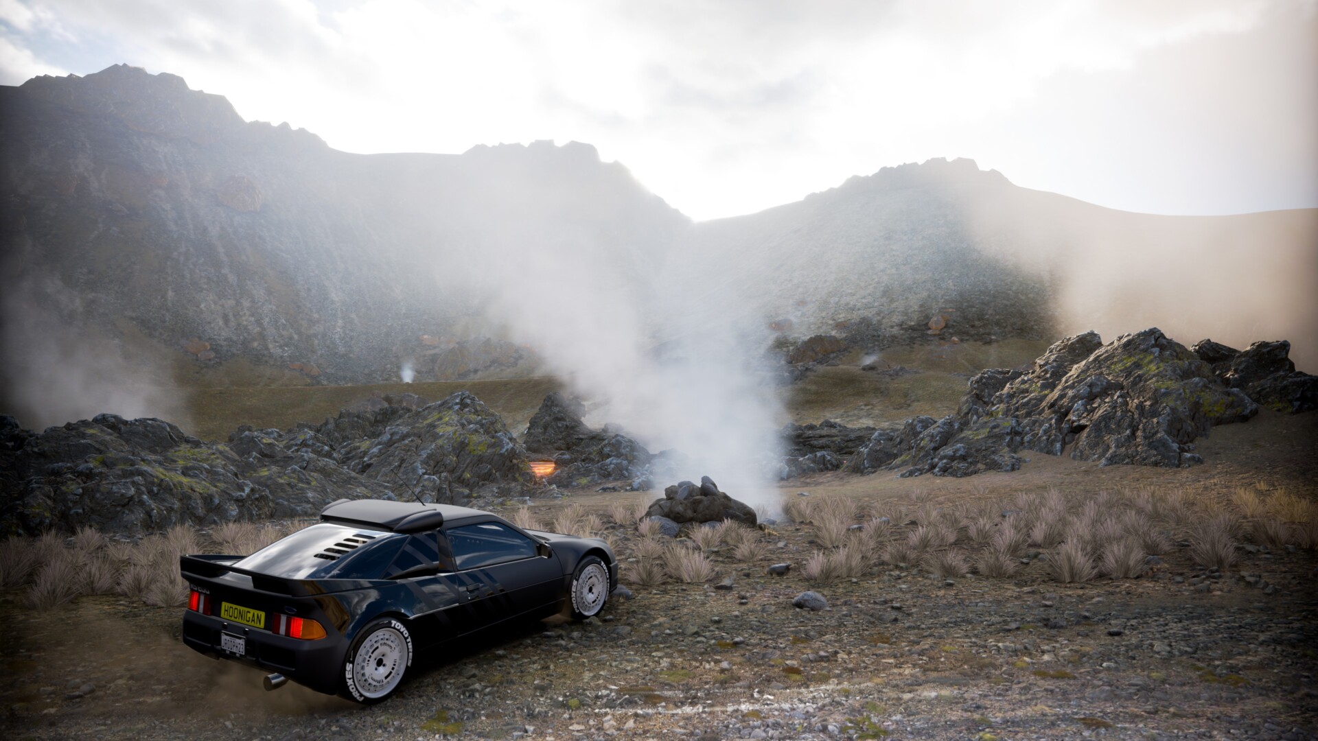 The initial part of the Baja Expedition in Forza Horizon 5 has you driving a Hoonigan Ford RS200 Evolution, one of the best offroad vehicles in the game. Just follow the dirt path as it winds around the volcano. You’ll eventually reach a sloping area near the crater. A short cutscene will play after this (seen in the featured image).