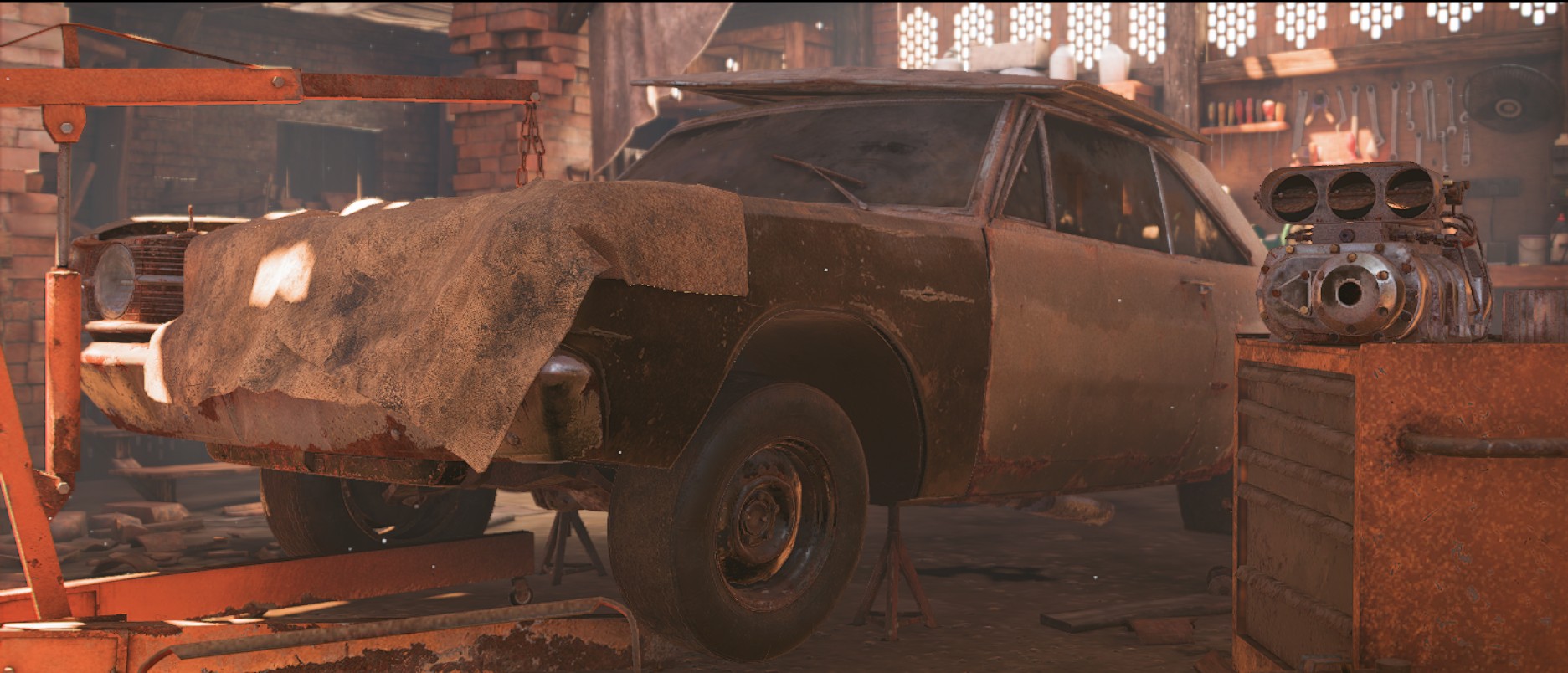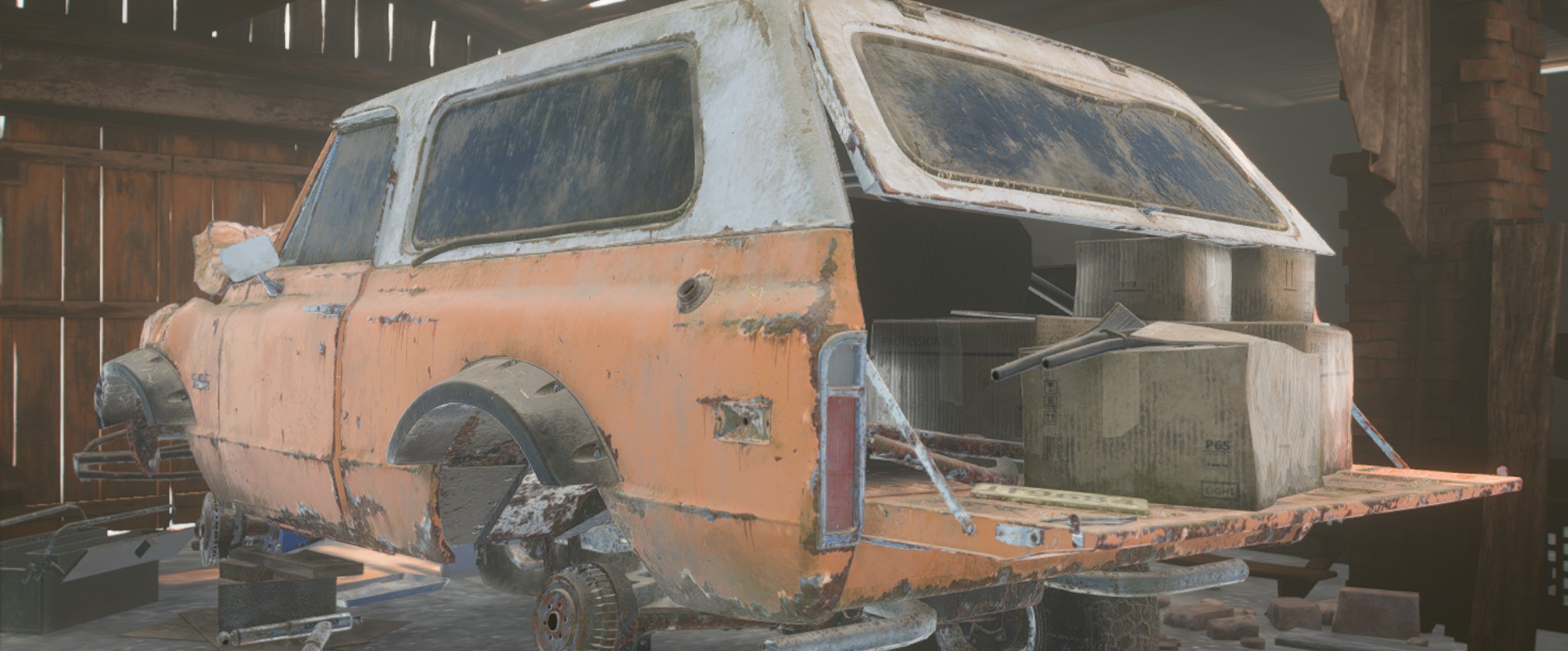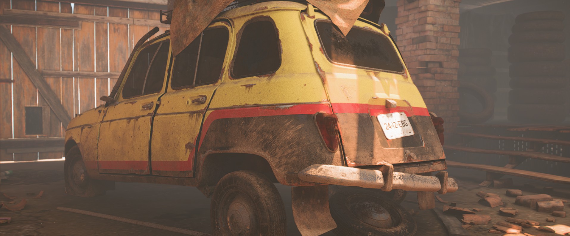 This little tike of a car is stashed away to the northeast of the Horizon Baja outpost along the road that connects the outpost to another road running east to west at the very top of the map. Near the intersection of the two roads is a big unmarked trail that has the barn containing the Renault at the end.