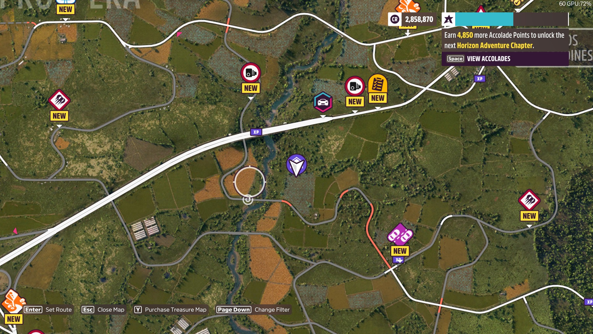 This iconic supercar is packed up to the west of the Horizon Apex outpost, near the swamps. There’s an XP board on a dirt road that intersects with another dirt road. Follow the road with the XP board north-westward and then you’ll discover the barn hidden among the trees.