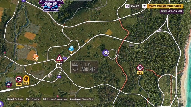 A beast of a racing machine, the Ferrari 250 GTO is quite the treasure. It’s waiting to be found in its barn that’s located south of the Eliminator meetup, and east of the big roundabout in Los Jardines. Follow a dirt road until you see faint tire tracks leading off into the green field.