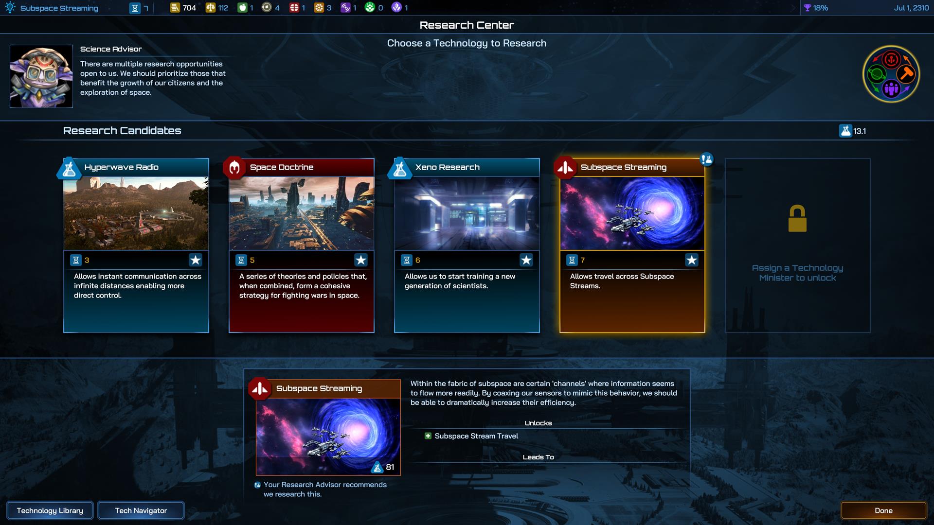 If you have a lot of fighters and capital ships, you can block this location from a rival that’s attempting to colonize new planets. Moreover, some major factions have advantages when it comes to exploration and interstellar colonization. For instance, the Navigators’ “Starfaring” ability lets them use Subspace Streams from the get-go, while giving their ships +50% additional range.