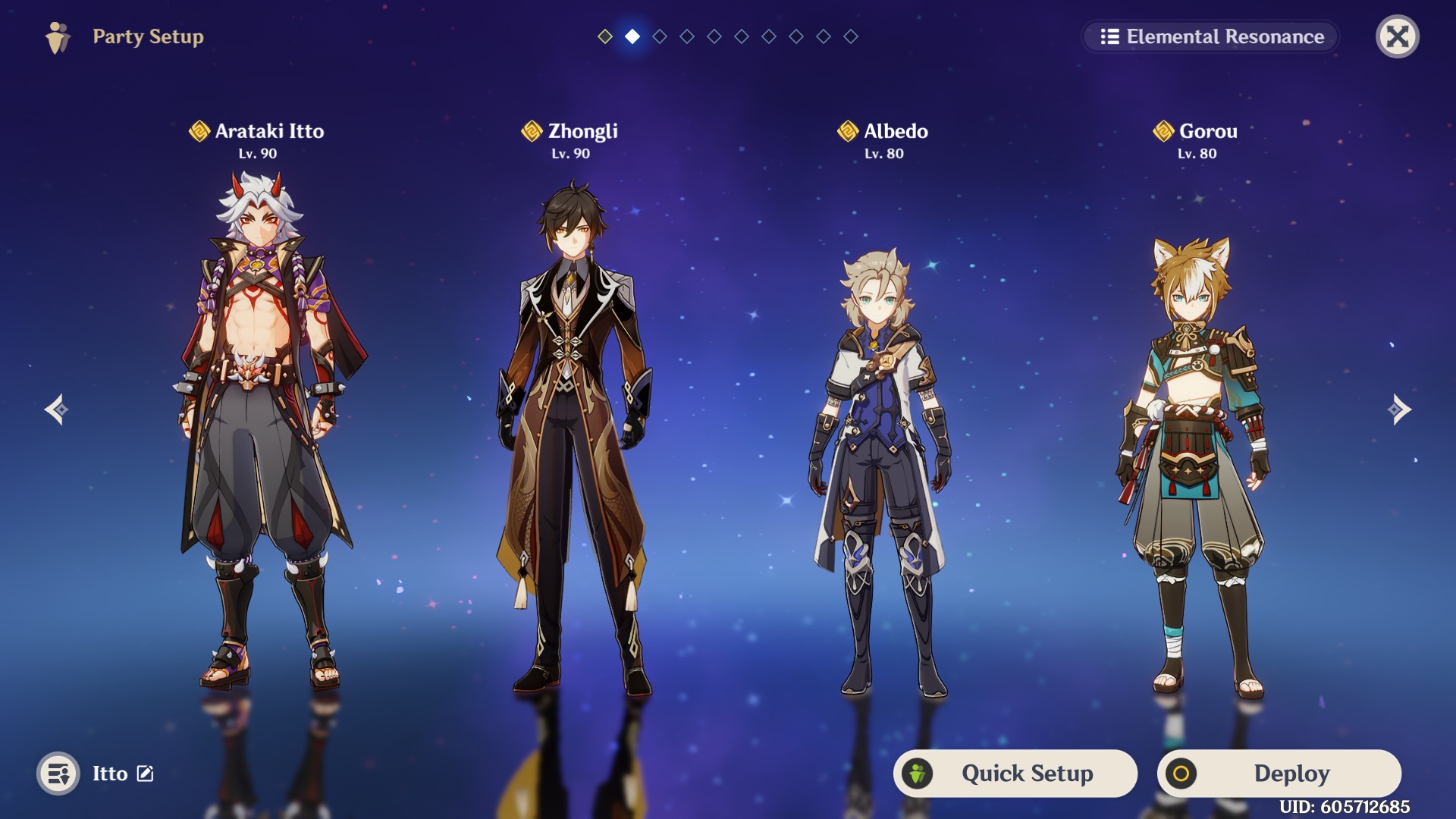 - Albedo / Arataki Itto / Zhongli / Gorou: Nowadays, Albedo is best utilized in a mono-Geo team. Zhongli is your defensive unit, and the strength of his shield mitigates the need for a healer. Gorou provides DEF buffs, which increase the damage for both Albedo and Arataki Itto. Arataki Itto is the main DPS in this team, whom Albedo supports with his flower.