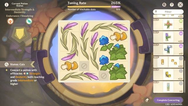 | Main Objective | Concoct a potion with efficacies Strength and Dexterity both reaching grade Intermediate or higher. |
