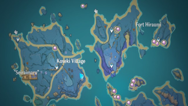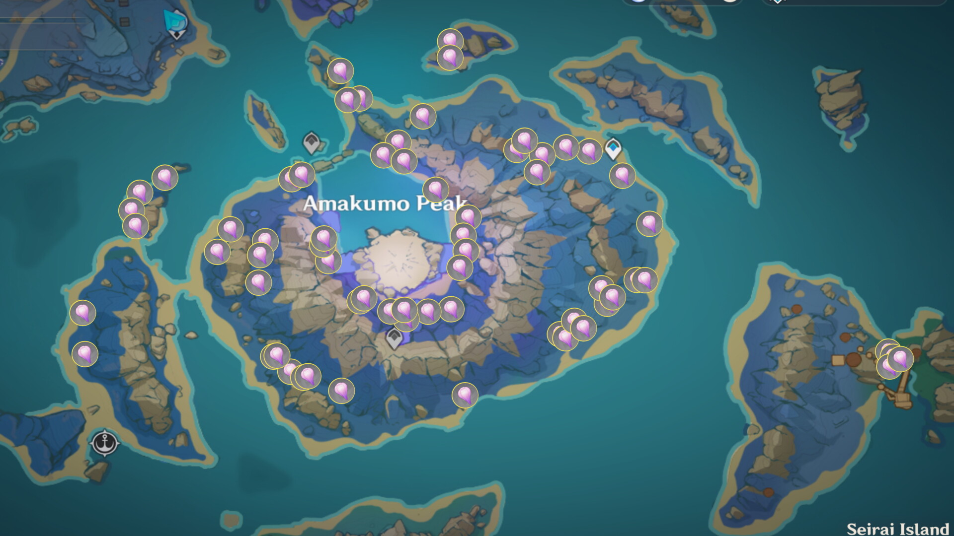 Lastly, if you look further to the southeast, you’ll notice an island that’s separated from the others. There are an additional 4x Amakumo Fruit nodes here.