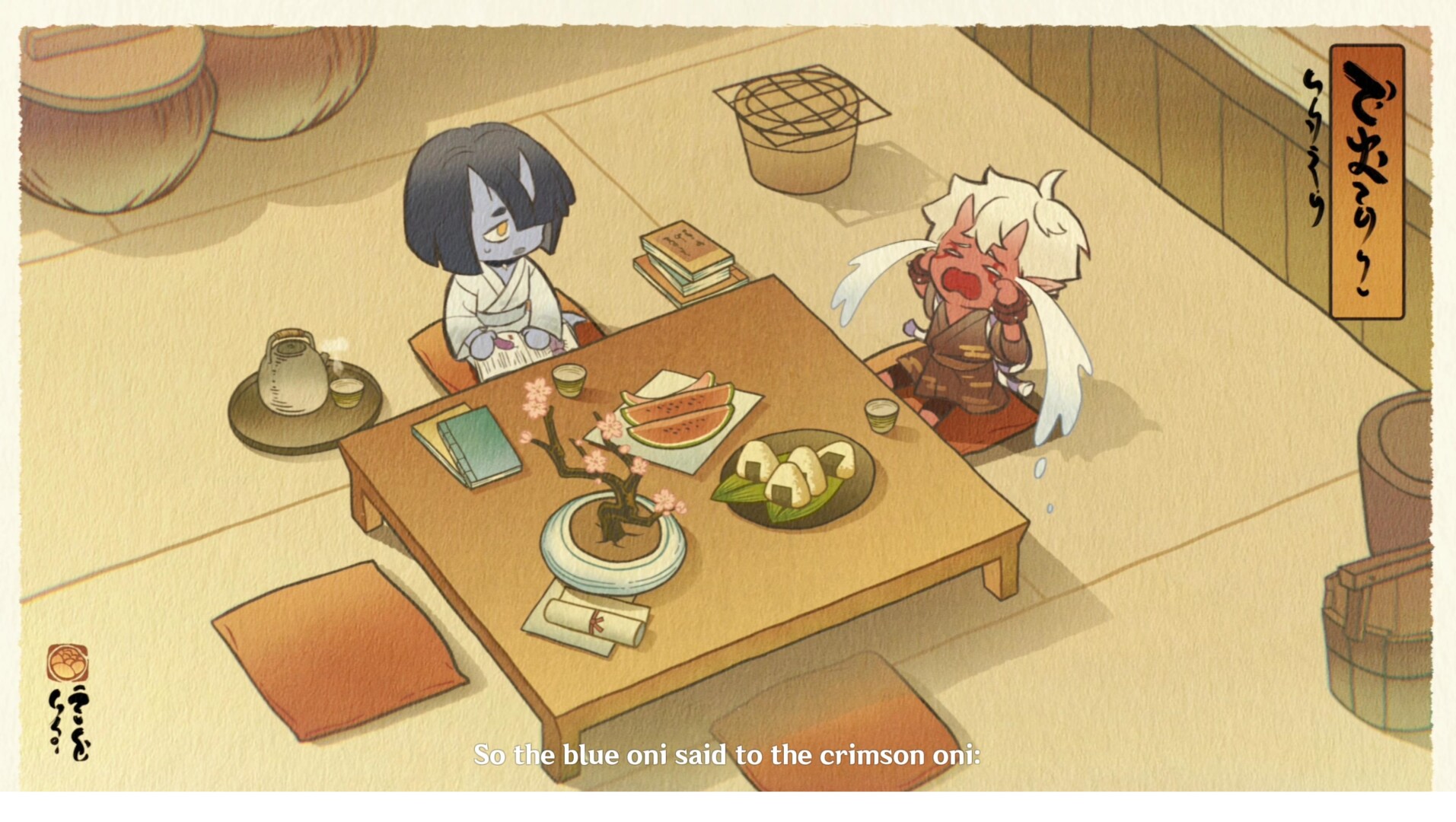 There’s a nice cinematic here telling you about the legend of the onis. The blue oni sacrificed his own needs just so the red oni (Itto’s ancestor) could be part of human society.