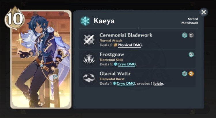 To be clear, Kaeya isn’t necessary the single best Genius Invokation Character Card in Genshin Impact. Rather, he’s the most beginner-friendly, as he’s immediately available from the get-go. As such, you’d probably use him often to beat most opponents in a Friendly Fracas for their rewards. The idea here is to cast Glacial Waltz ASAP (4x Cryo/Omni and 2x Energy). The initial damage is weak, but he’ll fire off three projectiles, each dealing +2 damage whenever you swap characters. That means abusing the mechanic, which only costs a single die, or maybe even free if you’ve got the right Support Cards.