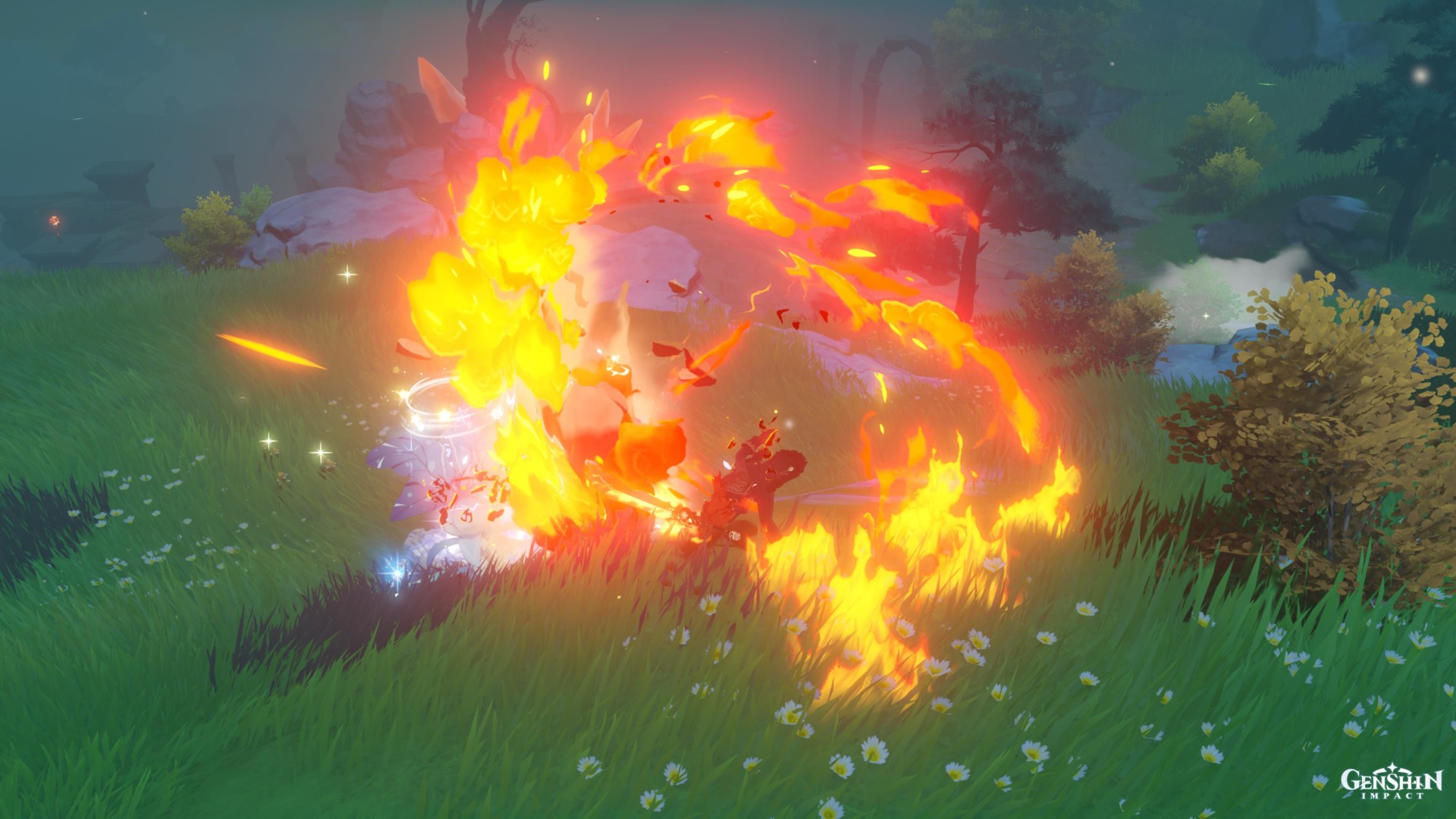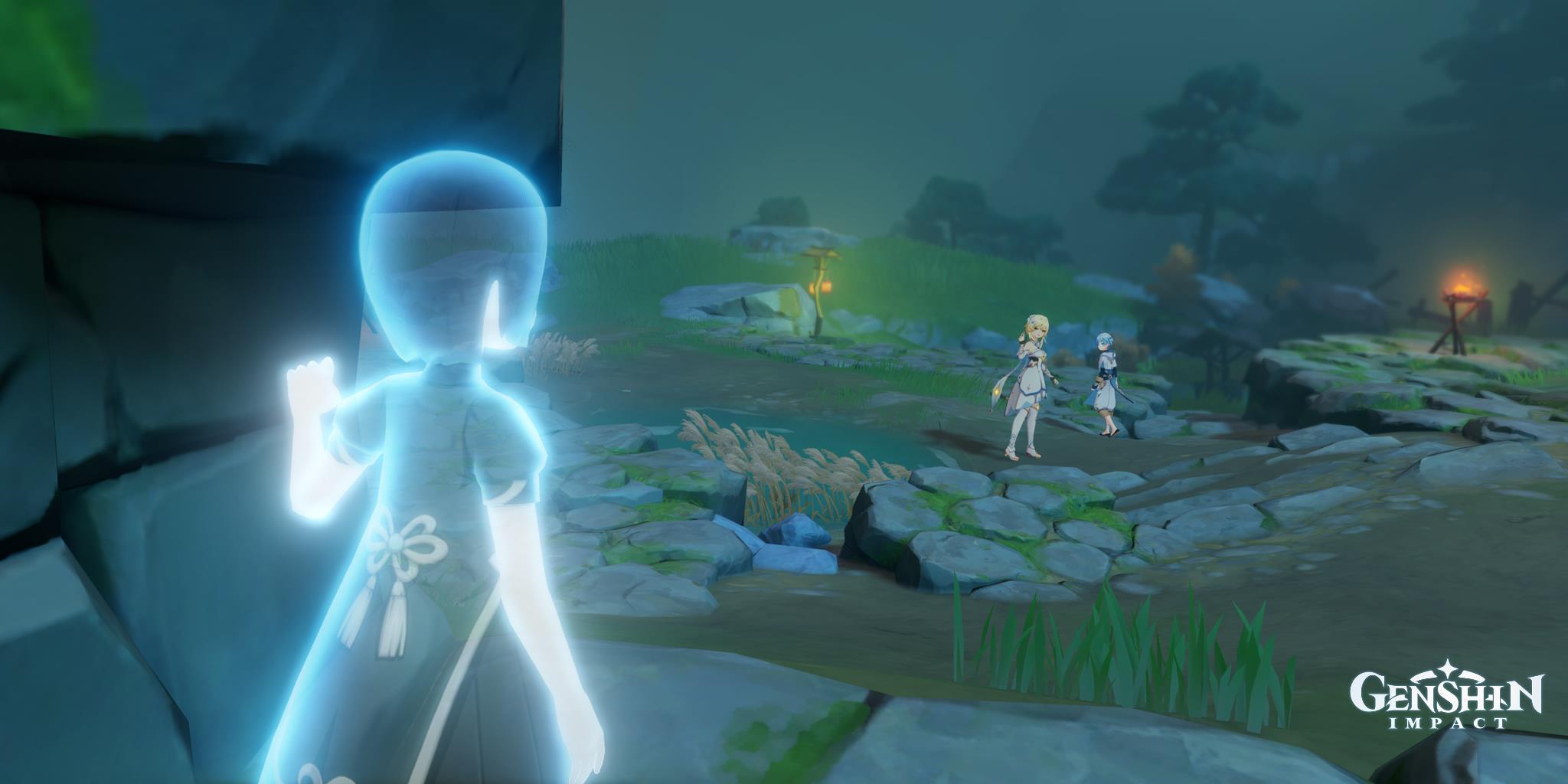 - Alternatively, you can just tell Chongyun that you’ll drink the beverage alone. Examine the mist/talk to couples as you normally would. Then, go to the marker to find the man who’s trying to spook others.