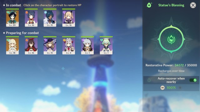 Barring any other instances or using skills, there are two main ways to fully heal your characters in Genshin Impact. The first one, as mentioned in our beginner’s guide, is via Statues of the Seven.