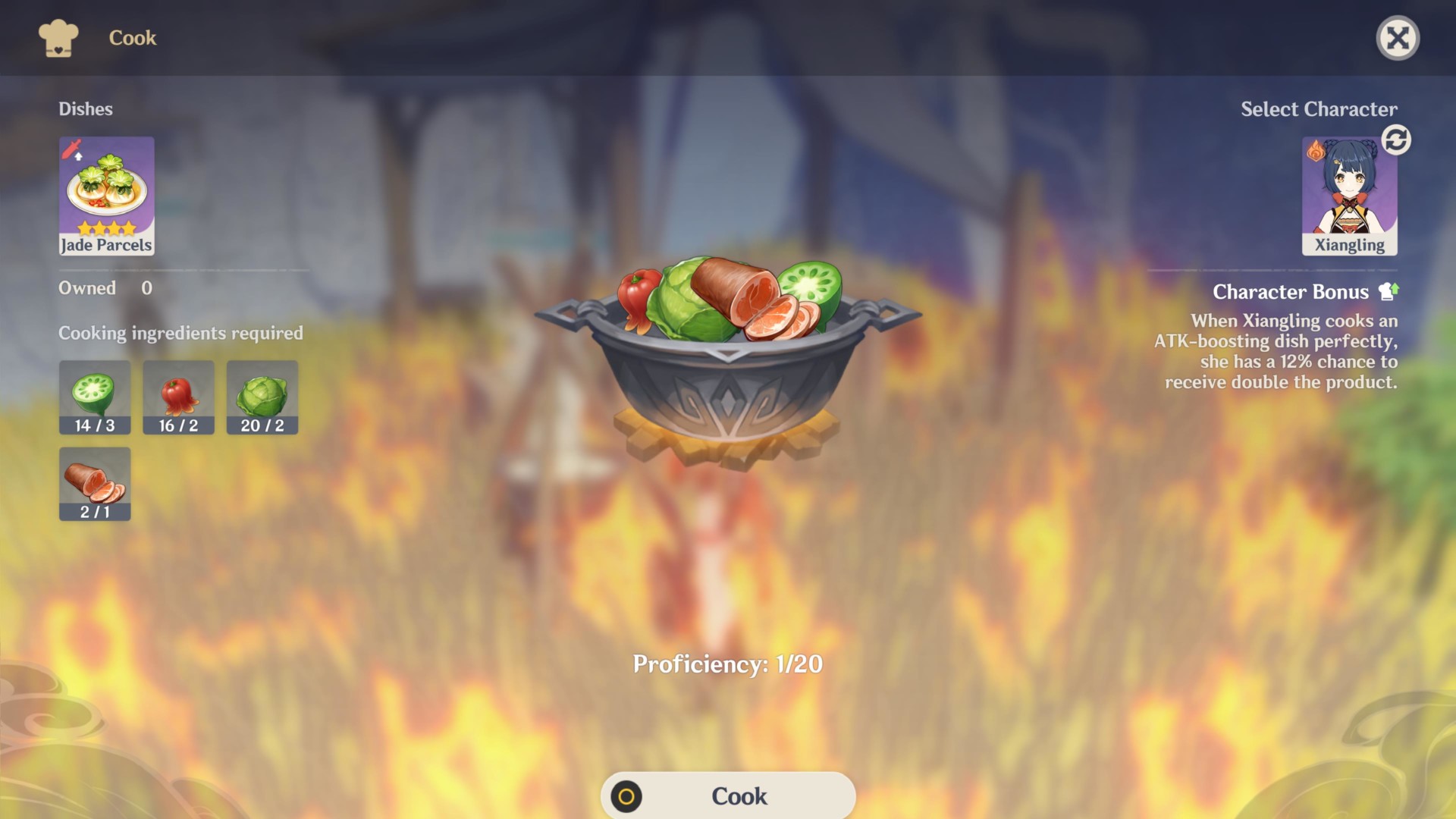 Check out if there are characters who have bonuses applied. For instance, Amber has a chance to obtain new dishes when she cooks Steak. Meanwhile, Xiangling can gain extra food if she can “perfectly” cook dishes that boost ATK.