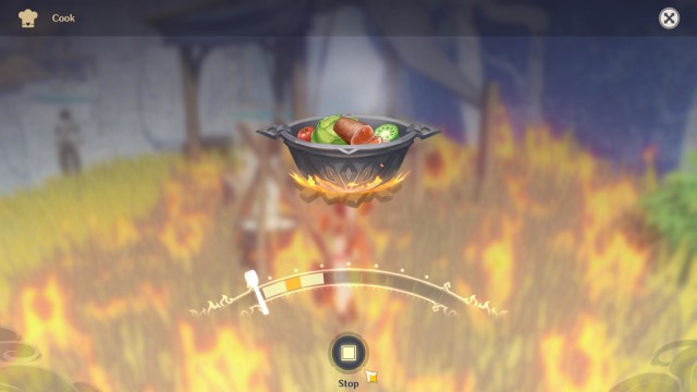 When you’re not an expert in cooking a particular recipe in Genshin Impact, you’ll need to play a minigame. A gauge will appear and you need to click on “stop” once the pointer reaches the “sweet spot.” Doing so means you cooked a dish “perfectly.” Clicking on the other lighter-shaded areas will still lead to success, but you want to hit the “sweet spot/perfect status” all the time.