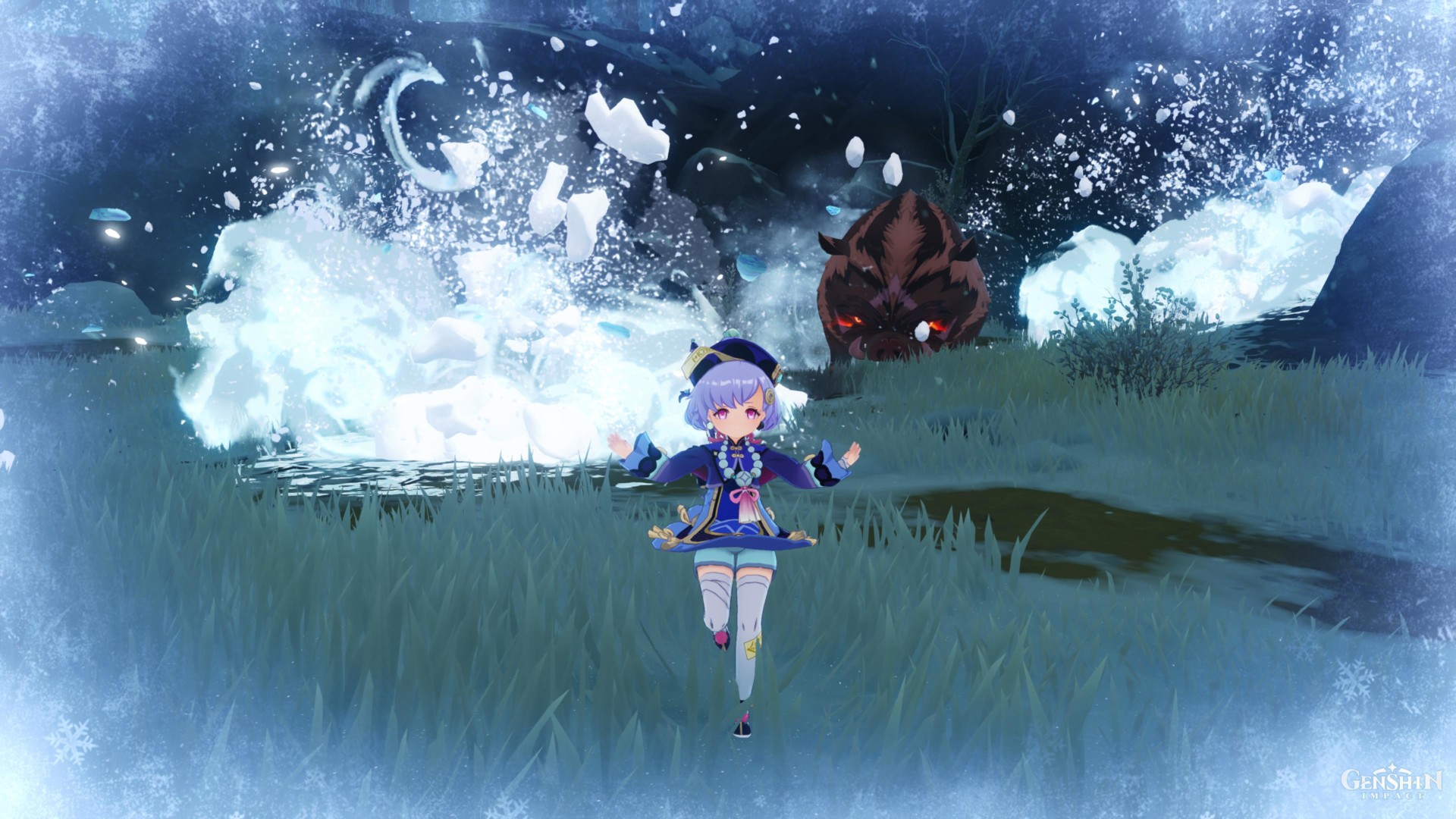 - Above 50% HP – It’ll summon several boars that’ll blast you with giant snowballs.
