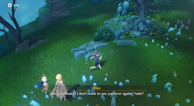 When you’re done, travel to Moshiri Ceremonial Site. Something strange will occur: lightning suddenly strikes the area. The Traveler and Paimon will make a run for it. You should then find yourself near one of the fast travel points. Go through the giant archway again to find Ruu. He’s definitely not happy with what you did, as it seems you made the Thunderbird Kapatcir angry (or something).