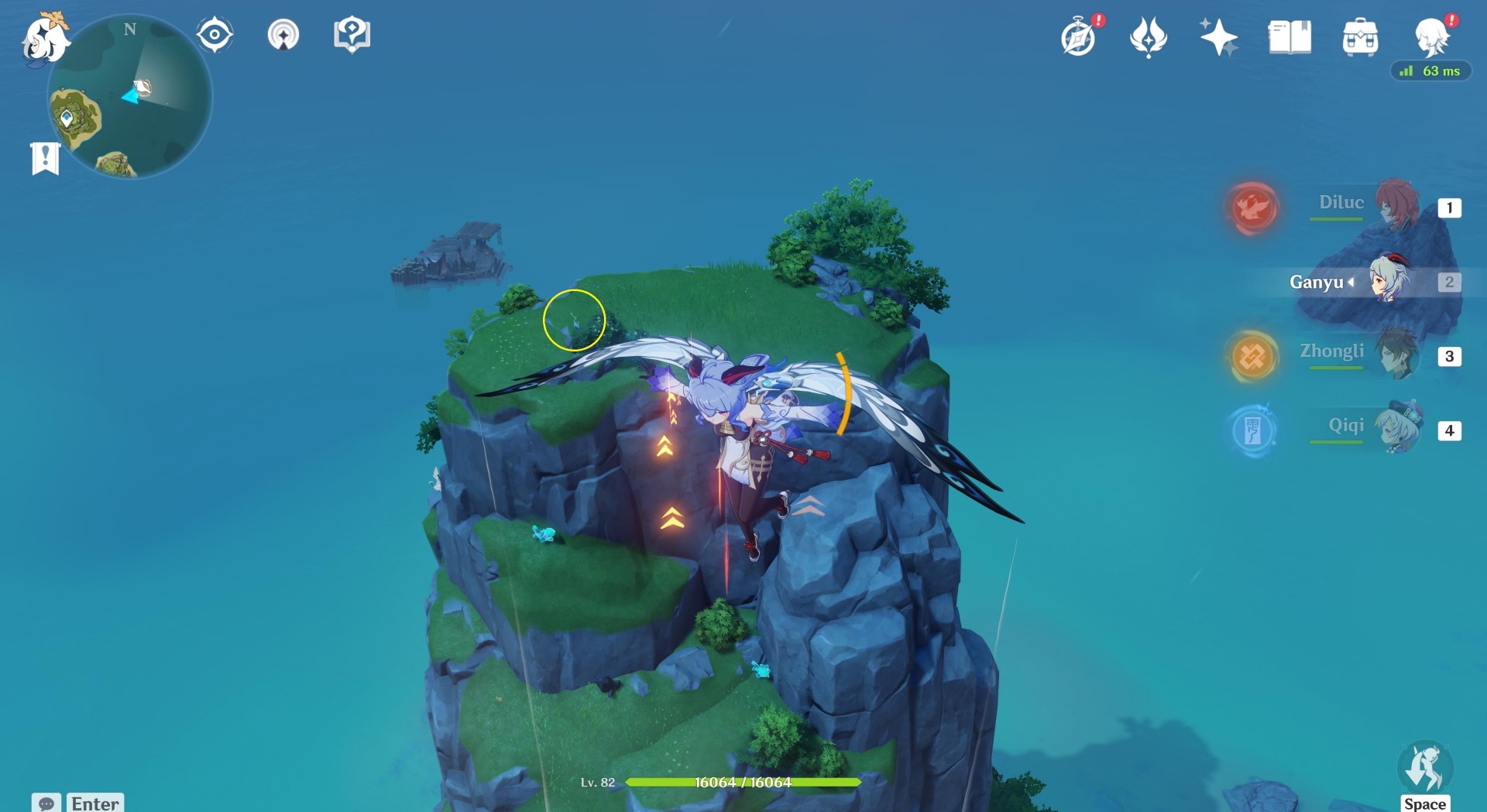 Glide northeast from the island. You’ll find this on top of a rock formation.