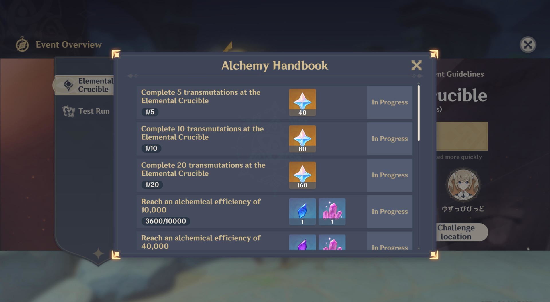 Furthermore, if you check the Events -> Elemental Crucible -> Alchemy Handbook tab, you’ll see more stuff you can obtain. These include leveling materials/Hero’s Wit or crafting resources.