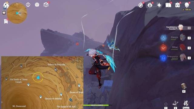 The Fane of Panjvahe domain in Genshin Impact is above ground, so you don’t need to worry about chasms and tunnels. As such, you’ll simply need to head to the northern section of the Desert of Hadramaveth, in the Sands of the Three Canals as seen on the world map. Since you’re approaching the vicinity of Mount Damavand, sandstorms will impair your vision slightly, though you should still be able to spot nearby landmarks.