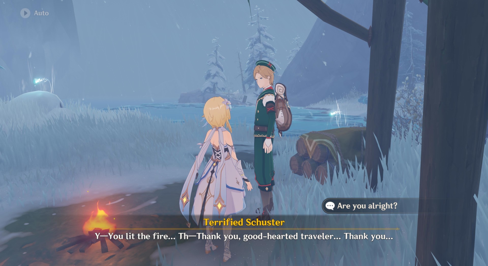 Anyway, apart from the “Missive of Cloud and Fog,” Genshin Impact also has additional Festive Anecdotes for Act II. The first, “Flavor of the Month,” is actually a surprisingly short quest. Simply go to Springvale and talk to an NPC who, in turn, will tell you to meet an adventurer on the eastern shore of Dragonspine. The adventurer there needs a fire, so use a Pyro skill. When you’re done, you’ll be given some chilled meat. Return to Springvale and give the woman 1x Dandelion and 1x Slime Condensate.