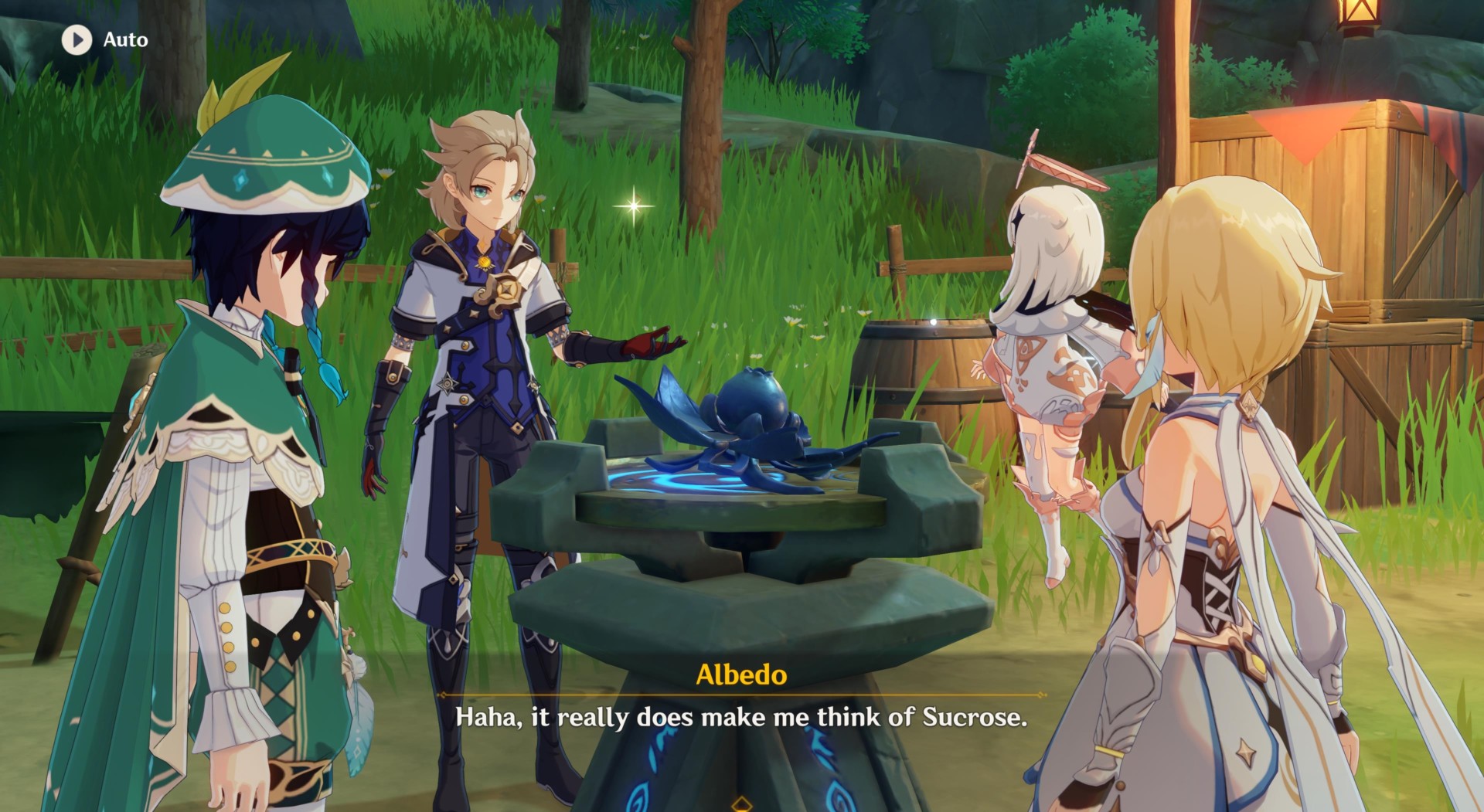 This will lead you to Dragonspine’s base camp to talk to Albedo. The master alchemist will create a giant Windblume flower for the gang. Go back to Sucrose and she’ll be happy with it.