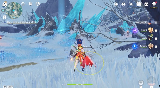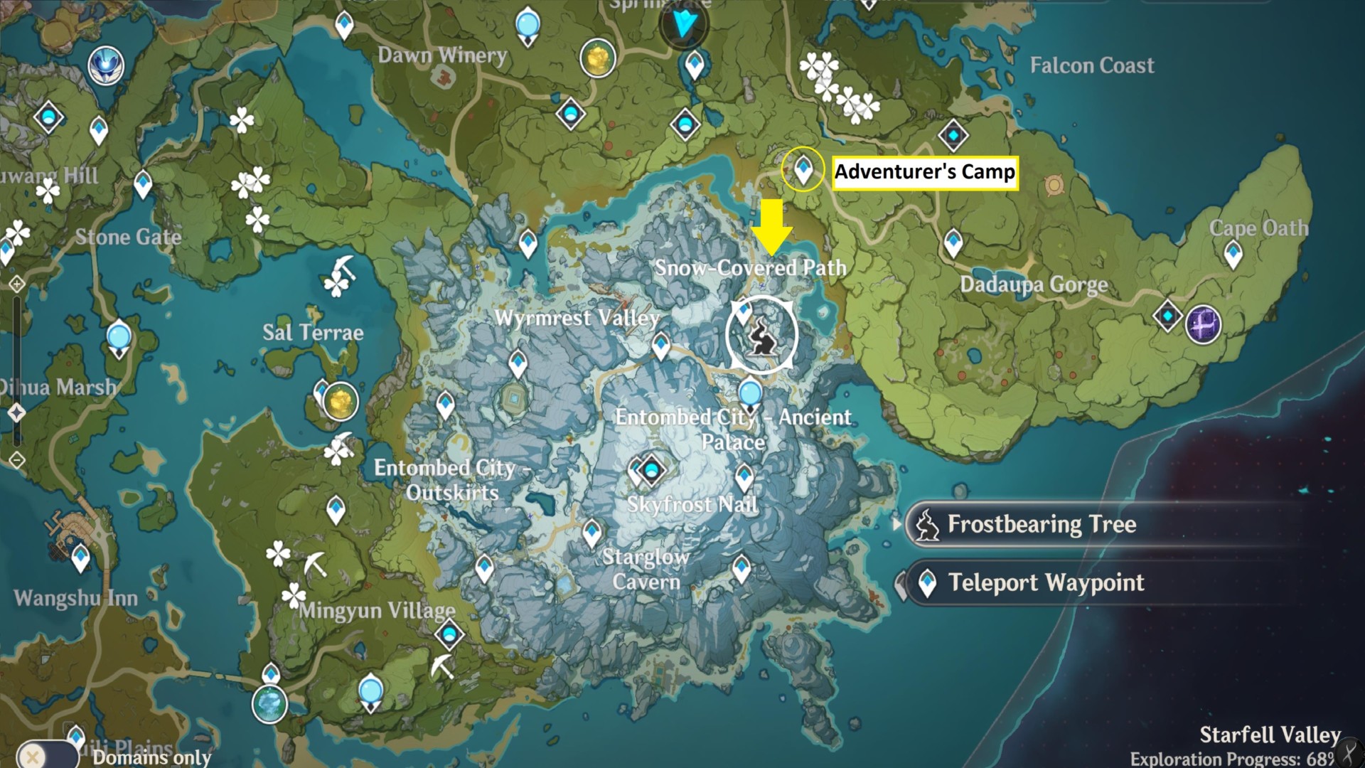 After speaking with Iris in the Adventurer’s Camp, you’ll learn that there’s a point of interest in the Snow-Covered Path area. Make your way there.
