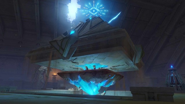 Once you’ve activated all four Ruin Mechanisms, make sure that the beams are facing the center. Interact with the pyramid-like structure and it will hover in mid-air. You can open a chest down below.