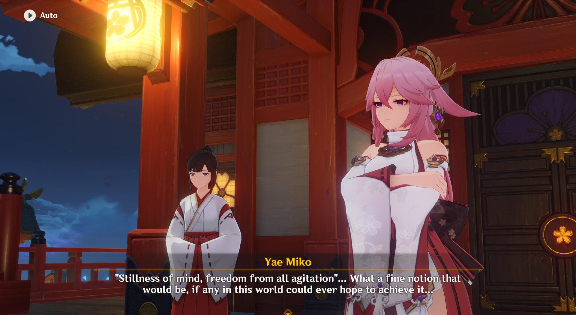 The head shrine maiden is none other than Yae Miko (who will likely be a playable character down the line). She admits that there’s really nothing wrong with the sensei. She also adds that she’s got her eye on the Traveler.