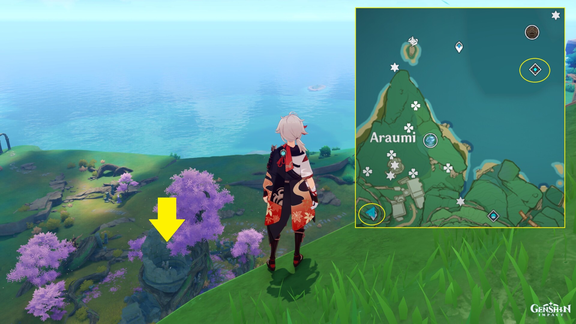 To unlock it, you’ll need to start a lengthy quest chain known as the Sacred Sakura Cleansing Ritual. The second portion of this quest has an NPC that rewards you with the Memento Lens gadget. The gadget is very important since it allows you to unlock a seal in the Araumi area.