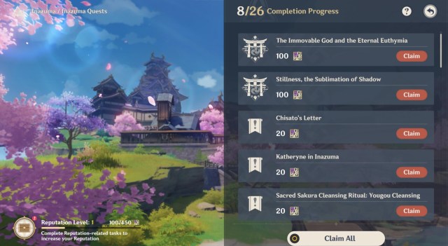 Increase your Inazuma reputation in Genshin Impact to earn more rewards.