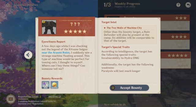 Note: Requests and bounties can only be unlocked once your Inazuma reputation reaches level 2. Because of this, you’ll first need to amass enough rep/exp from world exploration and quests.