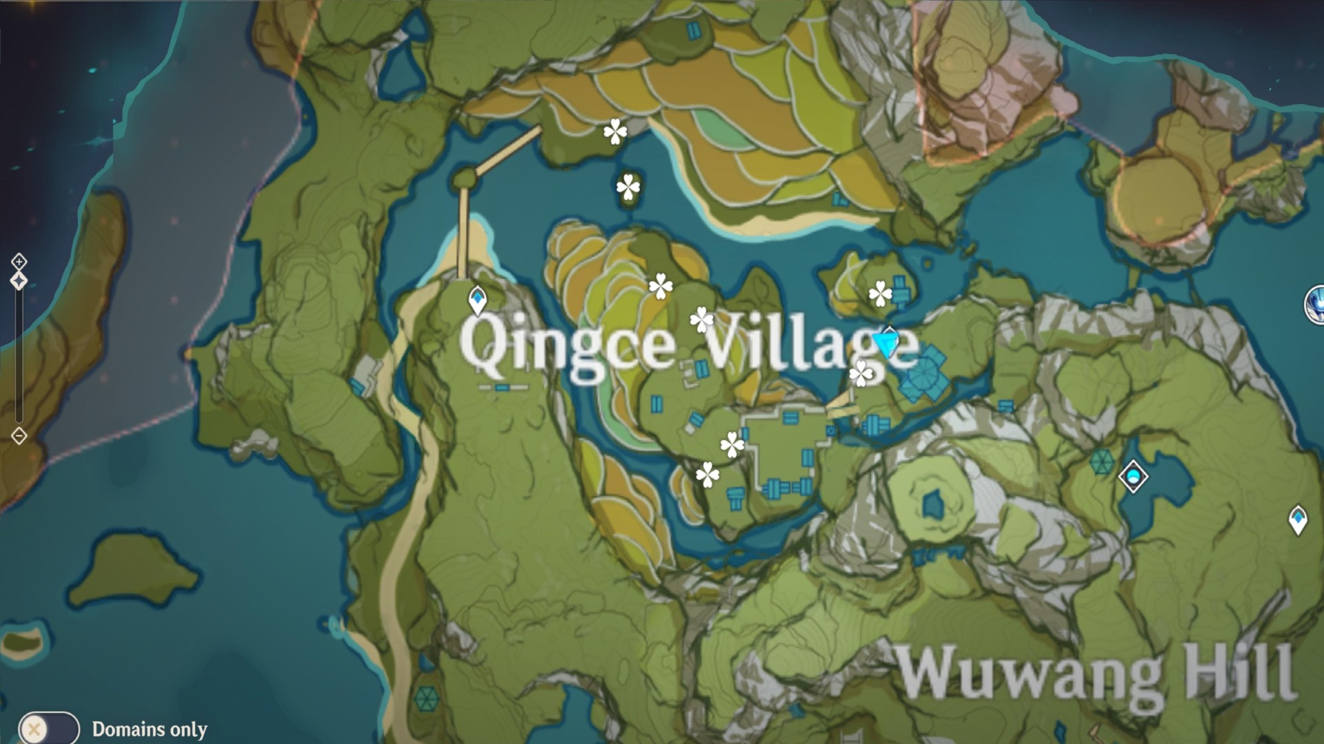 Anyway, after grabbing all the Jueyun Chili in Qingce Village, check out the map for the area closer to Stone Gate (seen below).