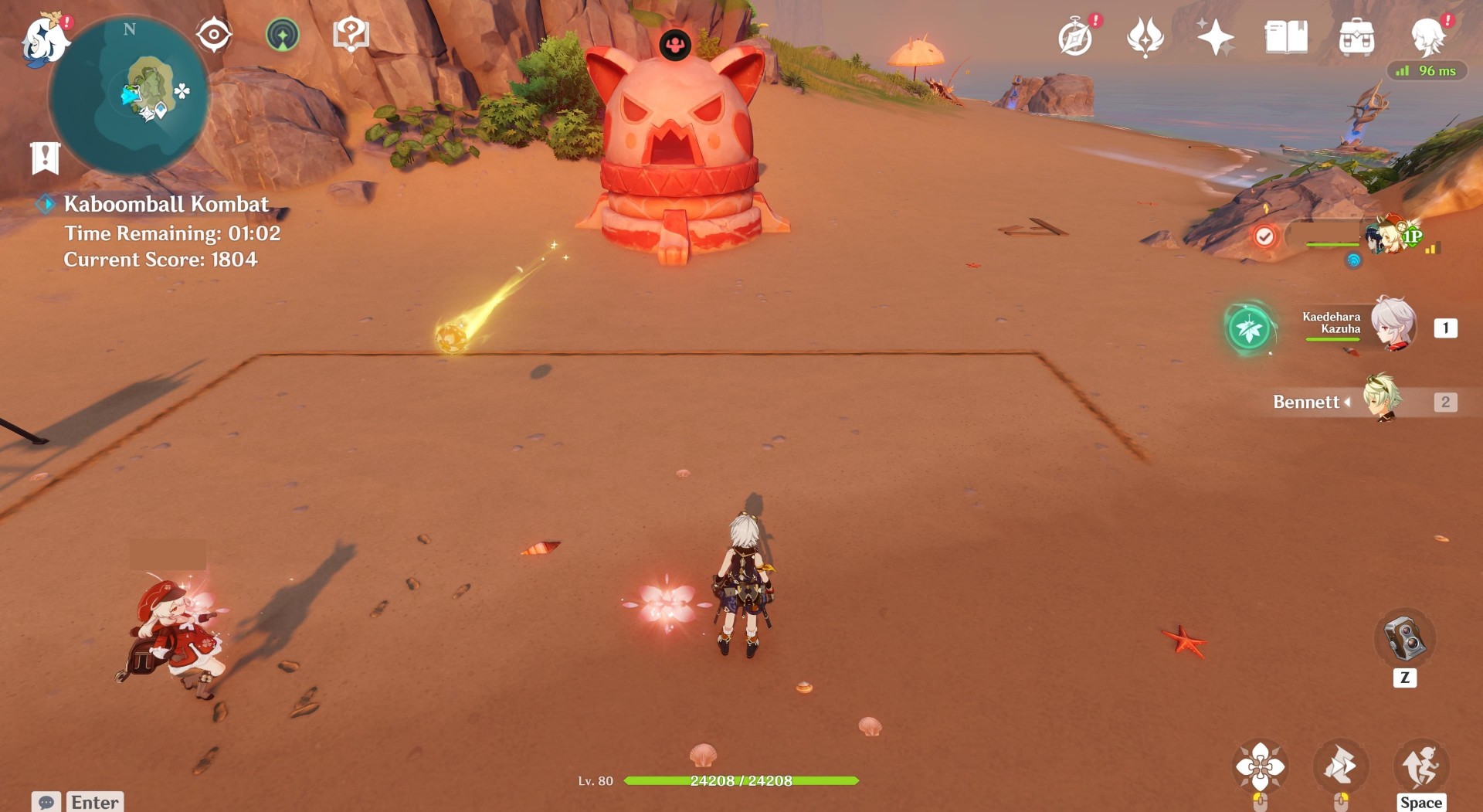 Also, don’t forget that you can do Genshin Impact‘s Kaboomball Kombat event with another player via co-op matchmaking. This has some benefits, such as a player helping you smack around those projectiles with ease. However, there are also certain downsides, such as players who often get whomped by projectiles (instead of hitting them back), or those who can’t reliably do perfect shots.